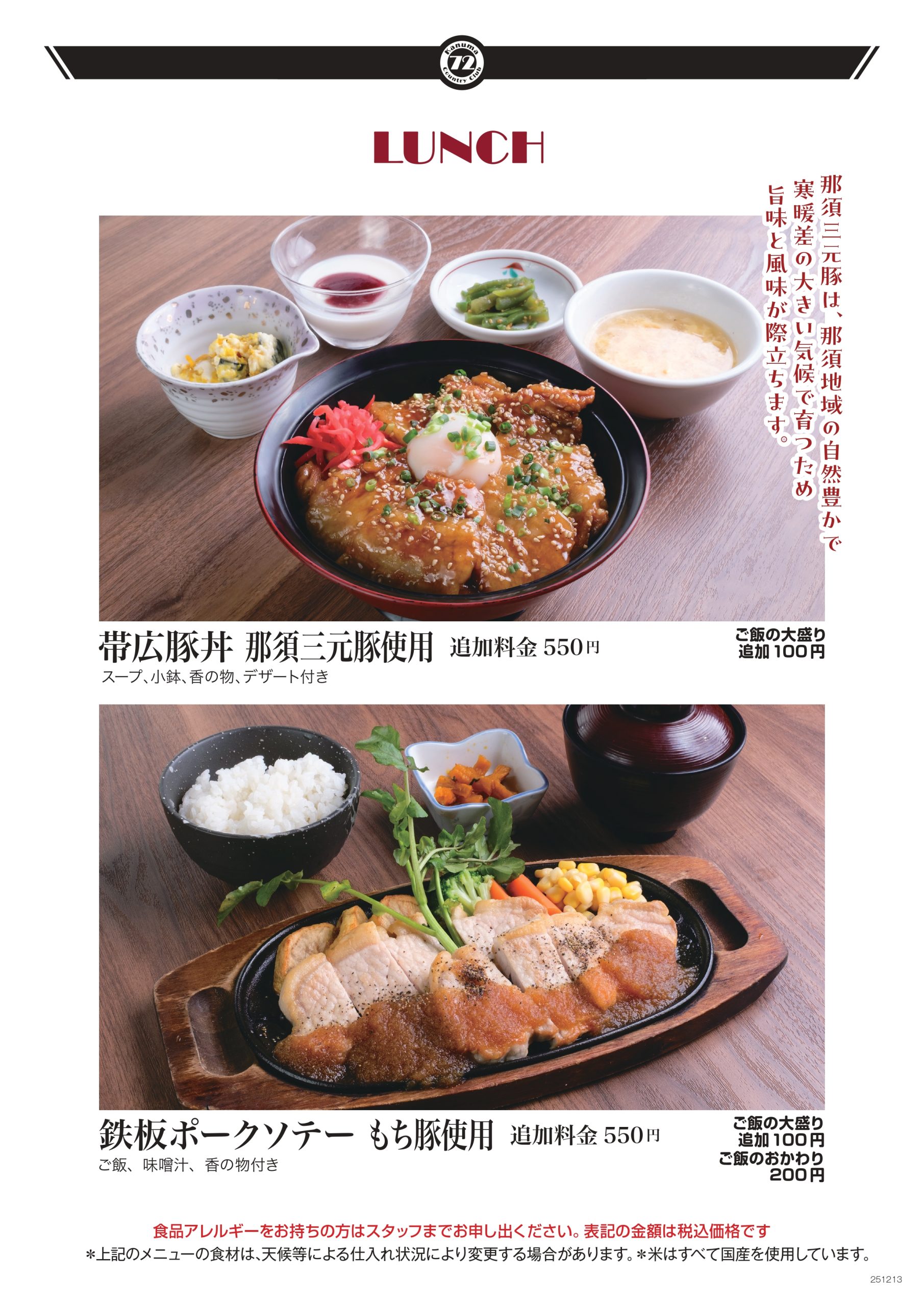追加料金 550円 *ご飯大盛追加100円